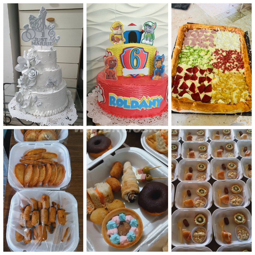 Croquetas, bolitas de queso, rollitos, pinchitos, pizzas, helado, cakes, bebidas, ron/whisky