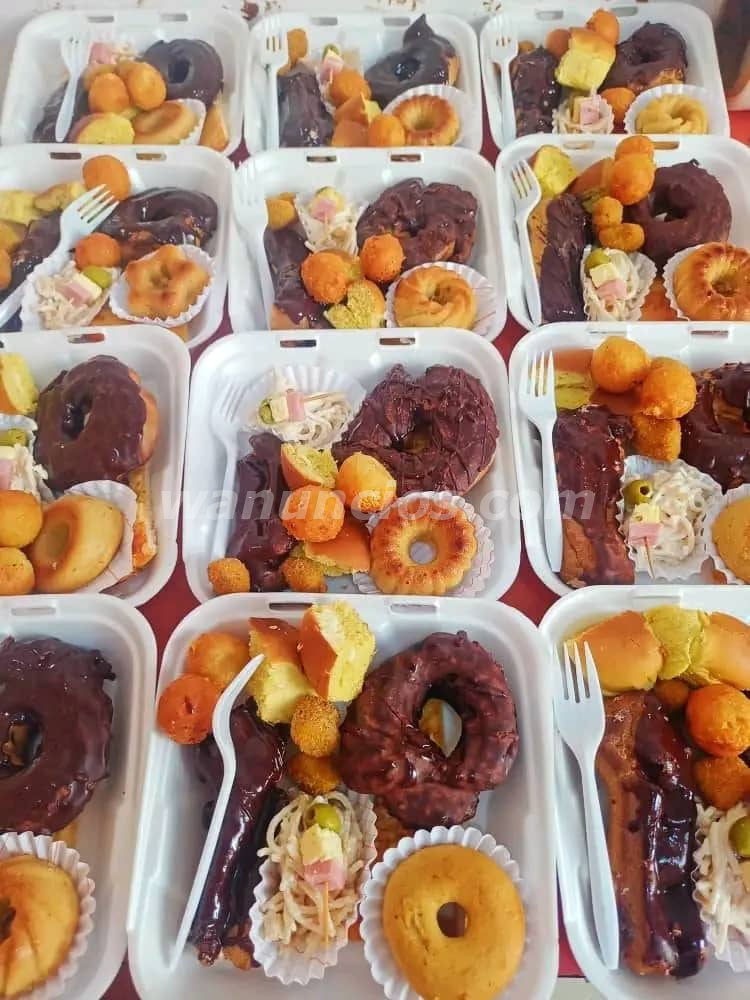 Incluyen cake personalizado, empanadas, croquetas, dulces finos, pancitos con pasta, fuentes de ensalada, helado y refrescos.